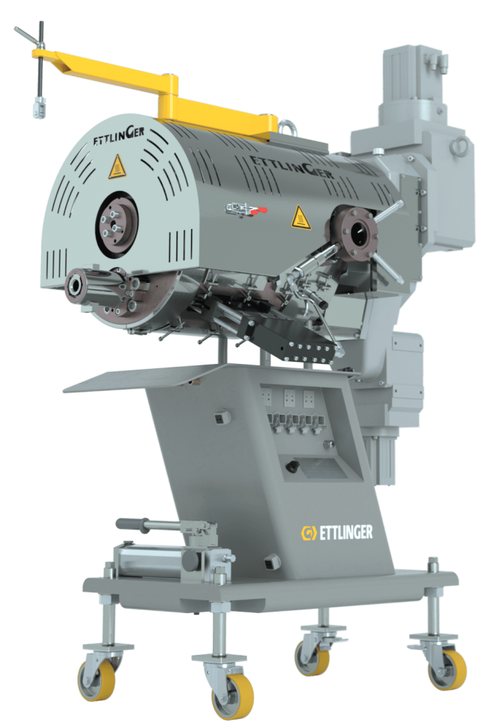 The MAAG Group’s exhibits include the ERF 350 high-performance melt filter and the BAOLI-3 dry-cut strand pelletizer. For recycling applications, MAAG offers continuous melt filters such as the ERF 350, which processes throughputs of up to 3,800 kg/h with a contamination level of up to 16 percent by weight. The melt flows from the outside to the inside through a continuously rotating drum with thousands of conical filtration holes, while impurities such as paper, wood, rubber, or metals remain on the outside of the drum and are continuously scraped off and discharged. A total of four ERF models cover throughputs from 150 to 10,000 kg/h. In addition, four models from the ECO series are available for PET applications with lower levels of contamination, such as production waste.